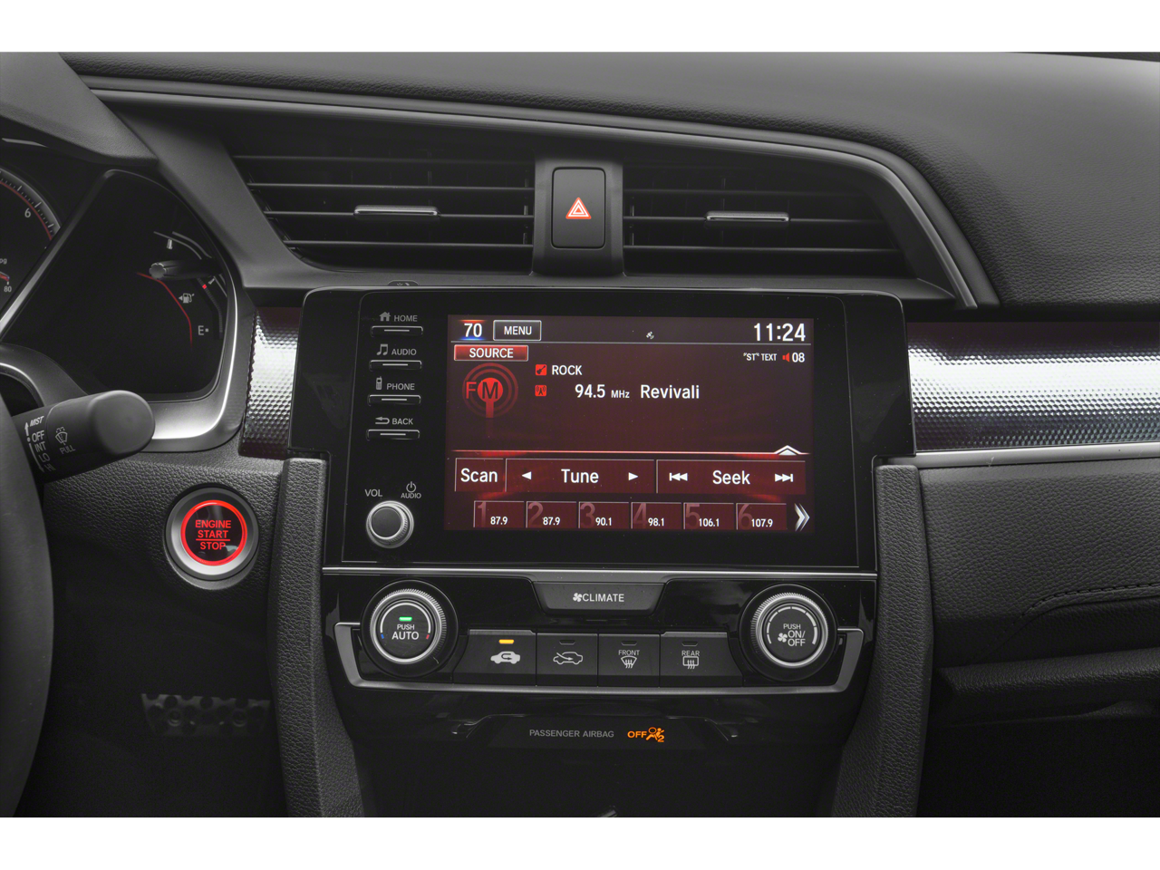 - Radio: 180-Watt AM/FM Audio System -inc: 8 speakers, 7-inch display w/high-resolution electrostatic touch-screen, knob and hard keys for primary controls and customizable feature settings, Bluetooth® HandsFreeLink, Bluetooth® streaming audio, radio data system (RDS), speed-sensitive volume compensation (SVC), 1.5-amp USB smartphone/audio interface in front, 1.0-amp USB audio interface port in center console, HondaLink, Apple CarPlay integration, Android Auto integration, SMS text message function and illuminated steering wheel-mounted controls